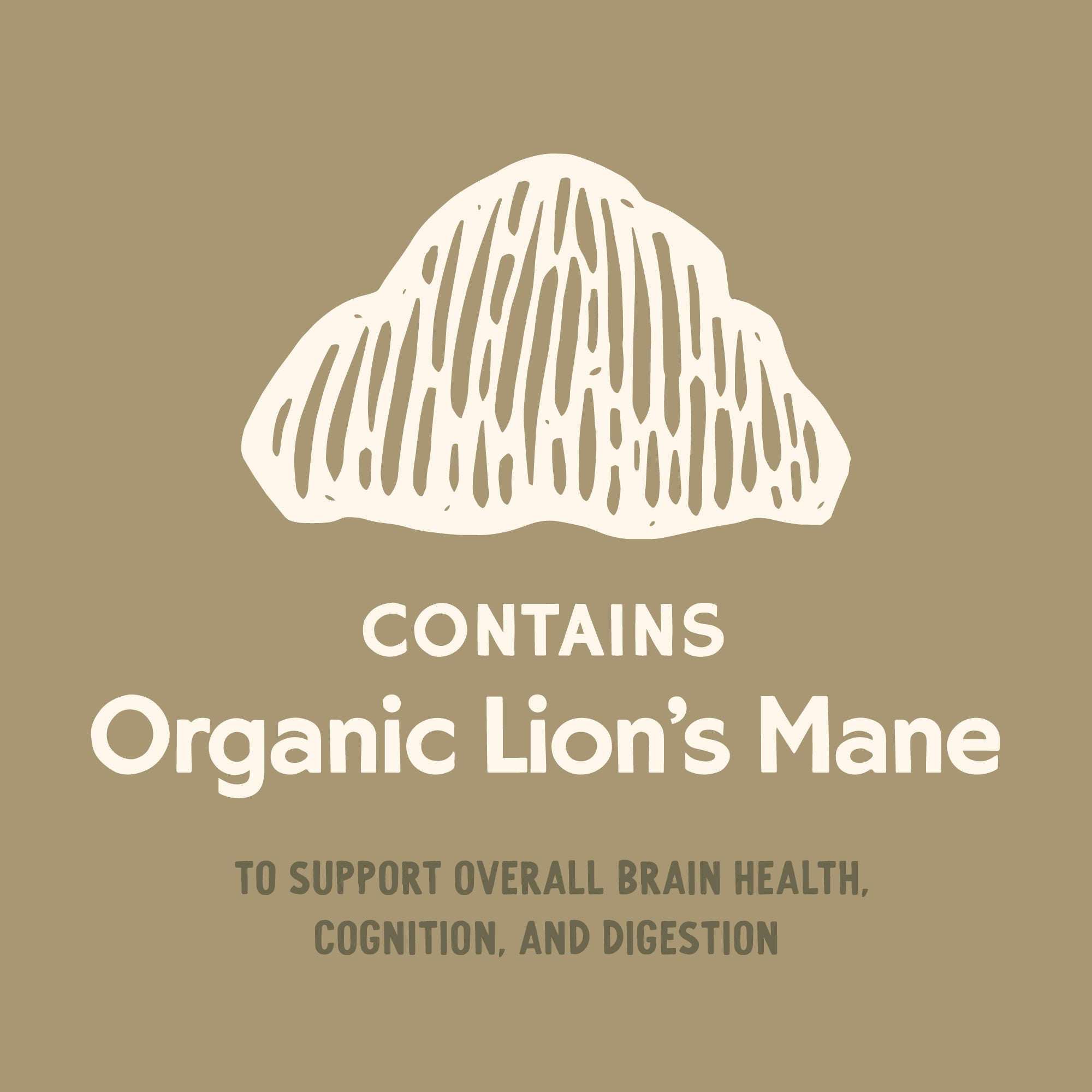 - Lion’s Mane mushroom mycelium grown in a Regenerative Organic Certified growth medium