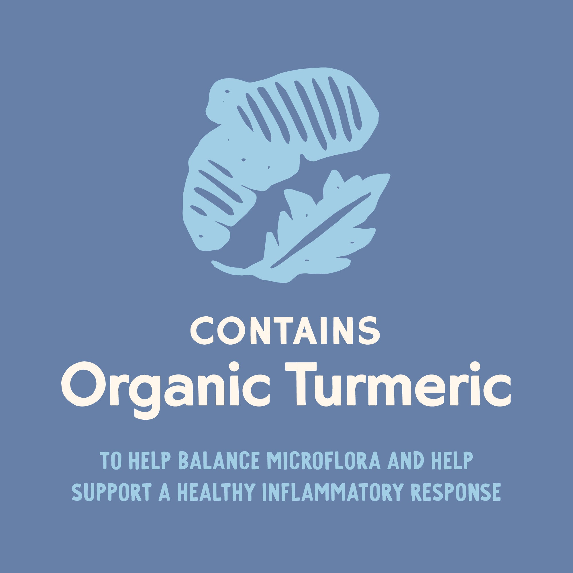 - Contains Organic Turmeric to help balance microflora and help support a healthy inflammatory response.